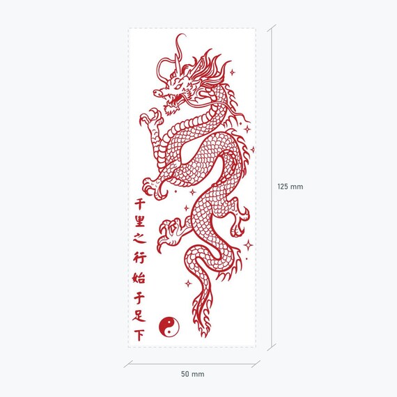 Temporary Tattoo Red Dragon Yin And Yang Chinese Etsy